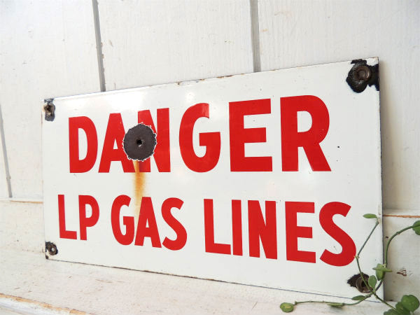 弾痕 DANGER LP GAS LINES 危険 ホーロー製 ヴィンテージ サインプレート 看板 USA