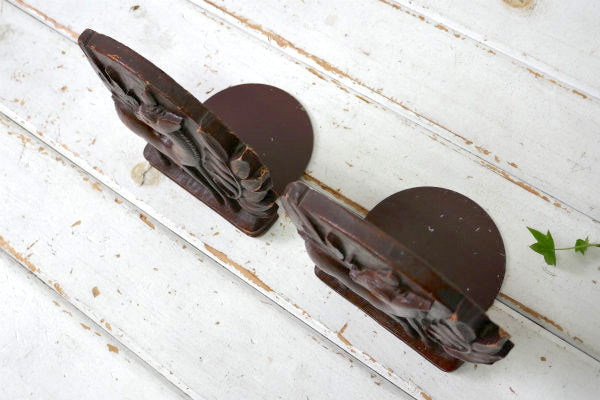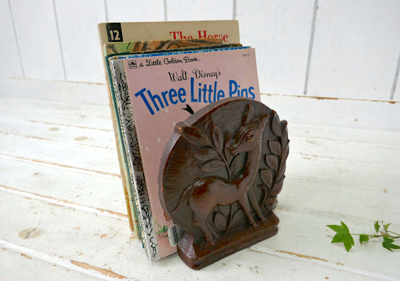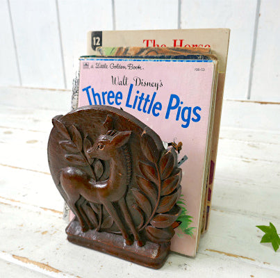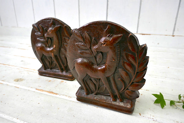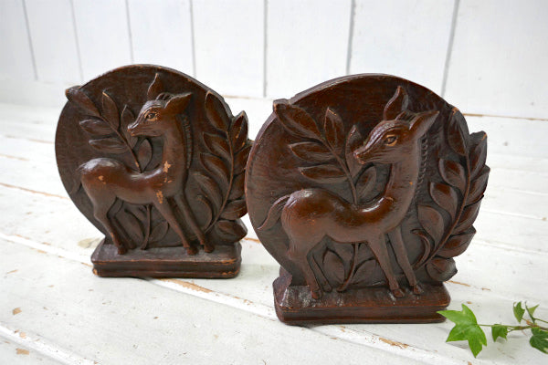 1940's 子鹿 バンビ Syroco Wood 彫刻 アンティーク ブックエンド 本立て ミッドセンチュリー モダン