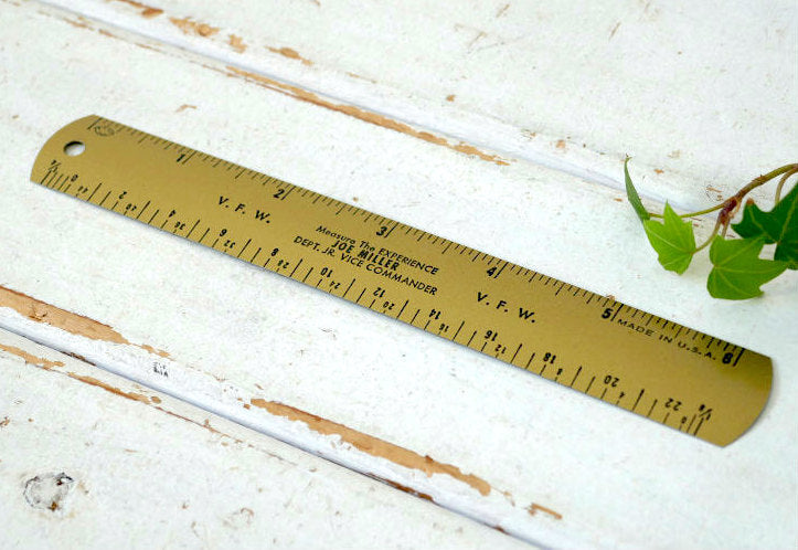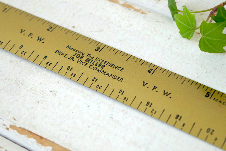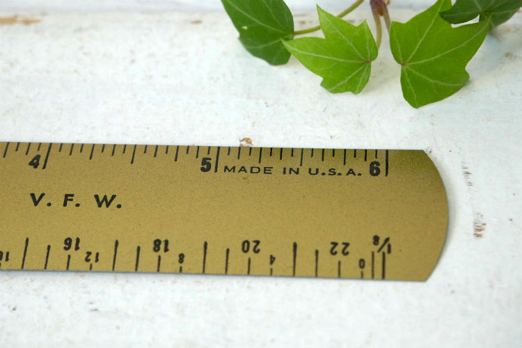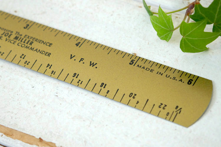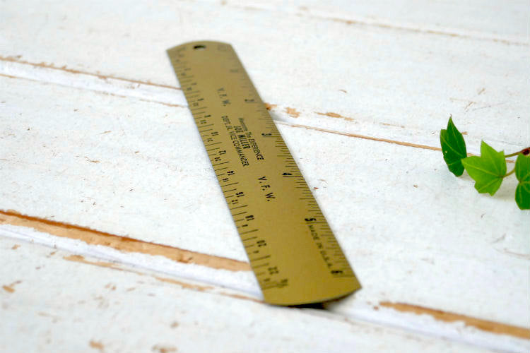 VFW 退役軍人クラブ ゴールドトーン デッドストック メタル製 ヴィンテージ 定規 ルーラー 物さし 文具 ステーショナリー USA