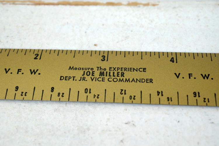 アメリカ西海岸・カリフォルニア州・サンフランシスコで見つけました・・『V.F.W. Department JR. Vice Commander』のメタル製・ヴィンテージ・ルーラー(物さし)です。