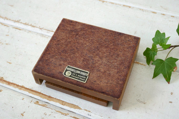 ボトムにフェルト素材の滑り止めが付いており、ラベルに【MORGAN'S / JOHN ROBERTS SIX E. MONROE CHICAGO 60603】とございます。