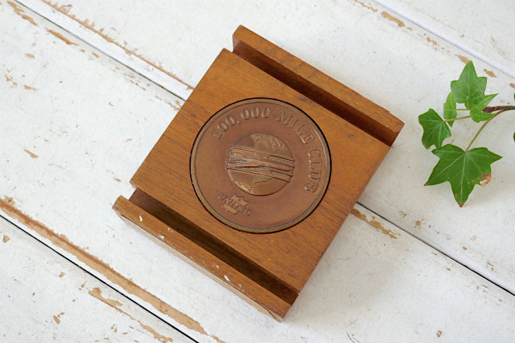 United Airlinesユナイテッド航空 100,000 マイル クラブ メダリオン 飛行機 1960's ヴィンテージ ペーパーウェイト カードホルダー USA 航空機