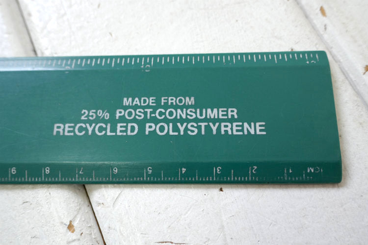 MADE FROM 25% POST-CONSUMER RECYCLED POLYSTYRENEと有り、25%リサイクル・ポリスチレン製です。