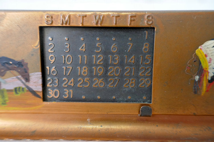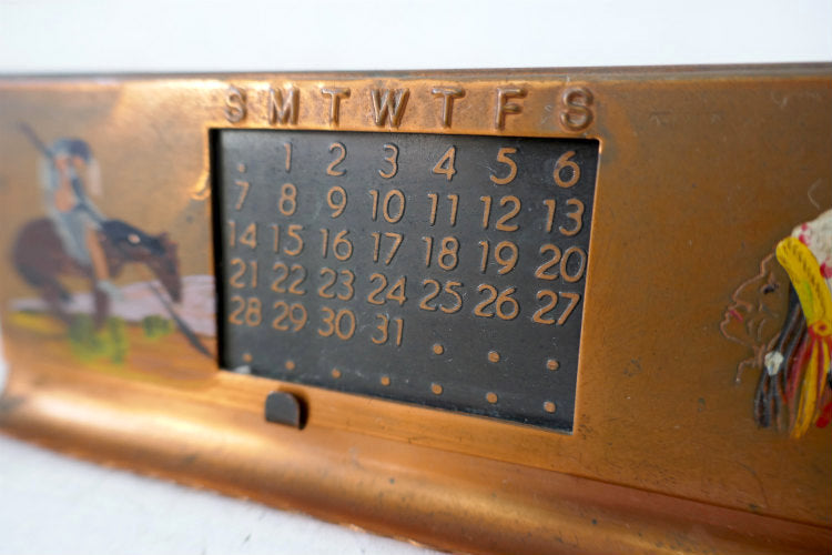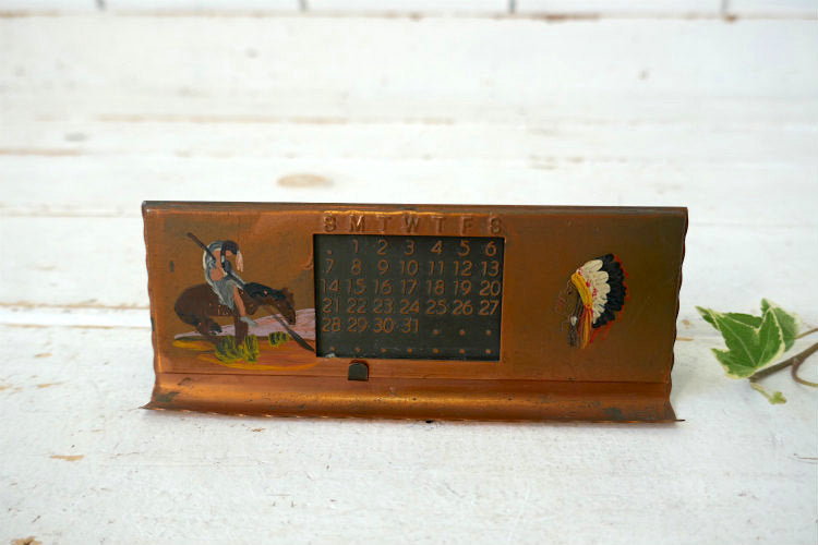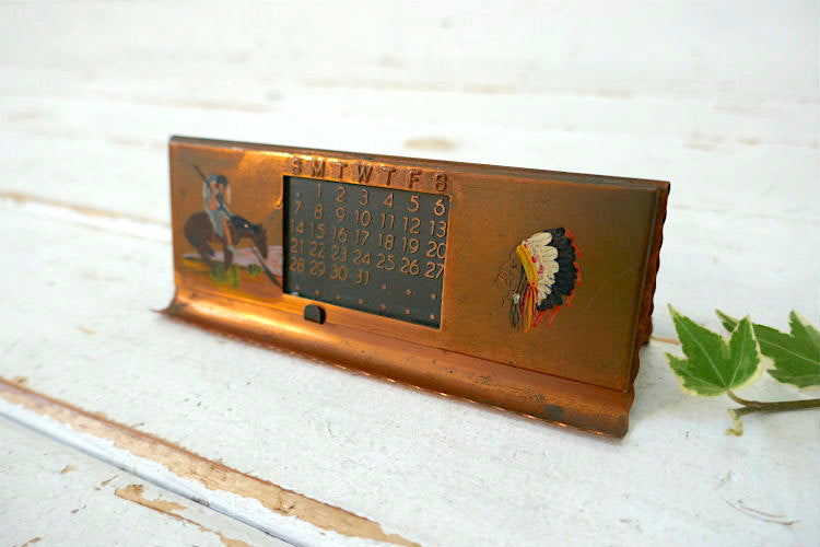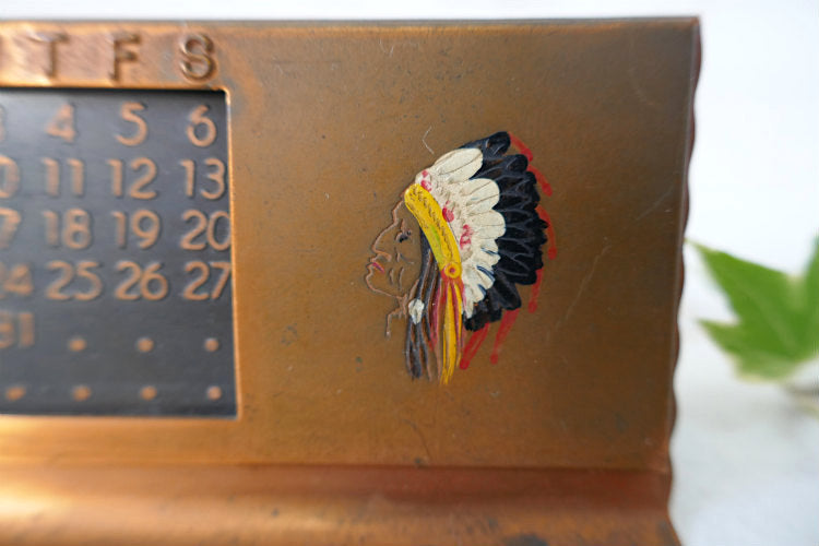 ネイティブアメリカン 酋長 インディアン コッパー製 50's ヴィンテージ デスクカレンダー 卓上カレンダー スーベニア品 USA