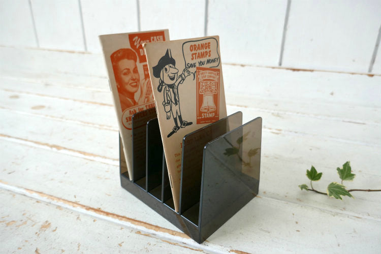 ミッドセンチュリー ブラック スケルトン 5スロット ヴィンテージ レタースタンド 書類スタンド オーガナイズ USA