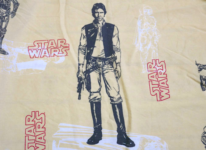 アメリカ西海岸・カリフォルニア州・ロサンゼルスで見つけました・・ジョージ・ルーカスが製作・監督したアメリカのSF映画『スターウォーズ(STAR WARS)』のUSEDフィットシーツです。