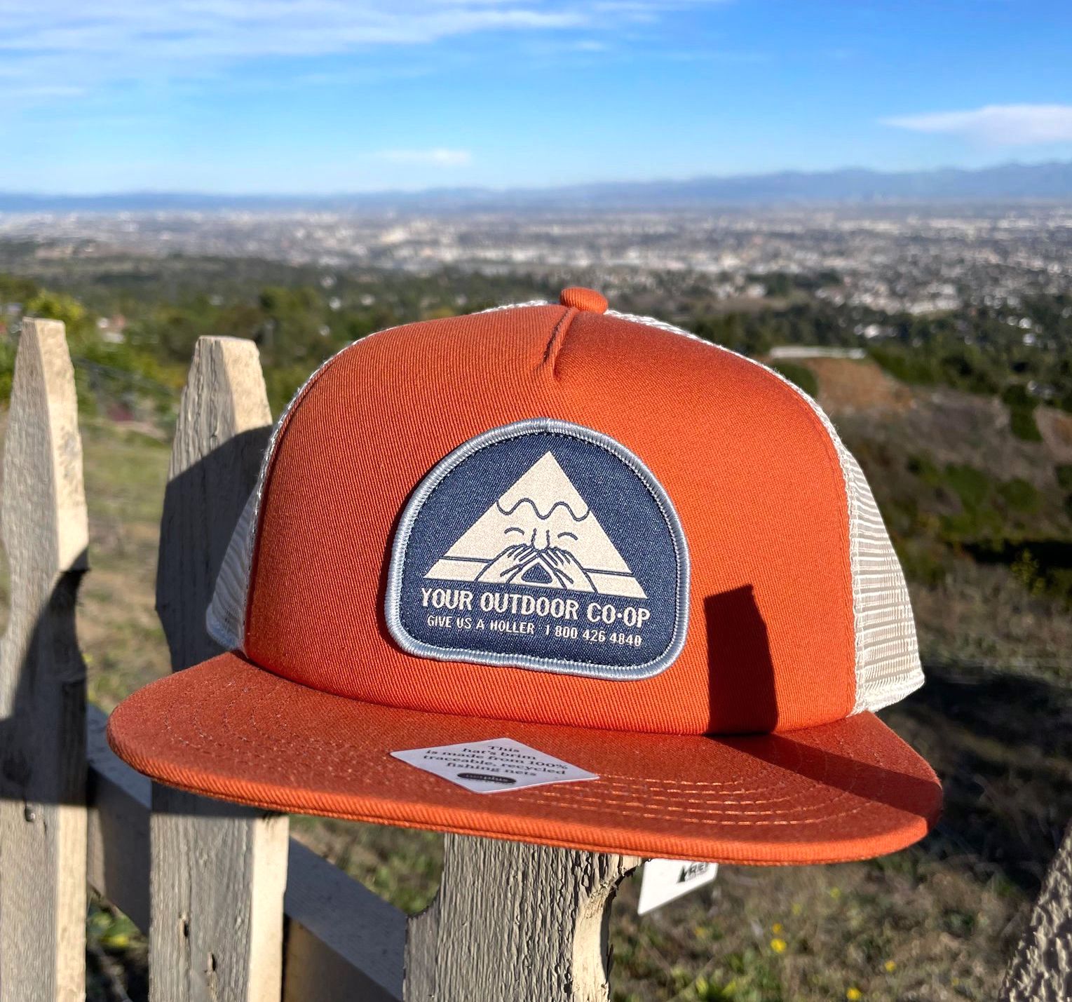 REI COOP コッパーカラー 山モチーフ GIVE US A HOLLER トラッカーハット キャップ アウトドア キャンプ USA