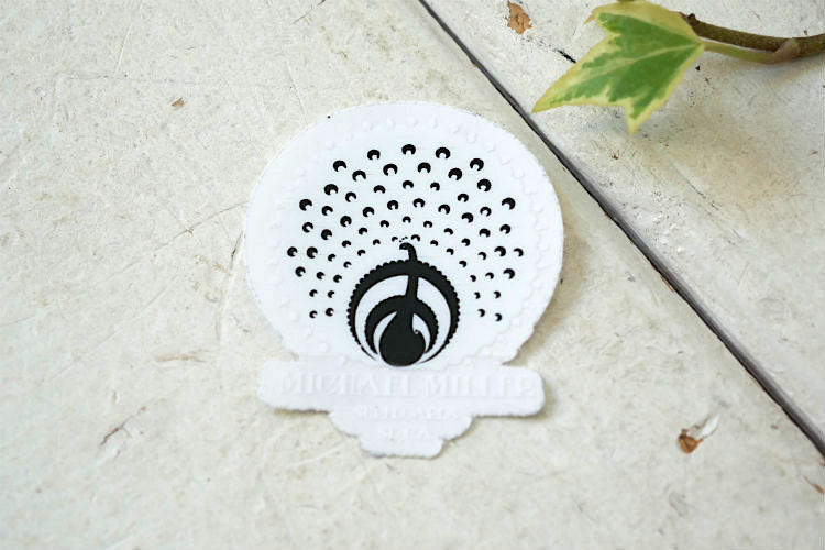 “MICHAEL MILLER SURFBOADS”マイケルミラー・サーフボードのオリジナル ステッカー・ホワイト 孔雀です。