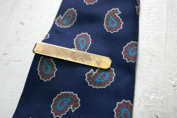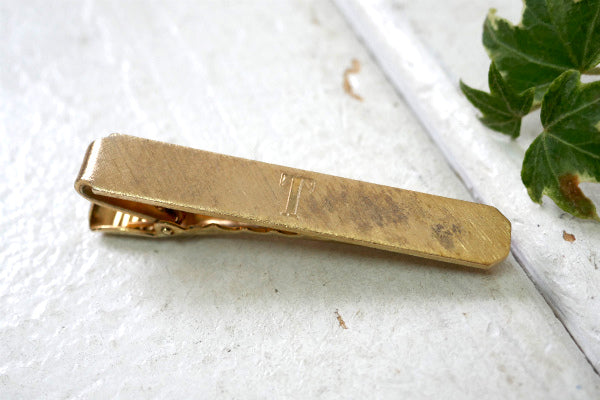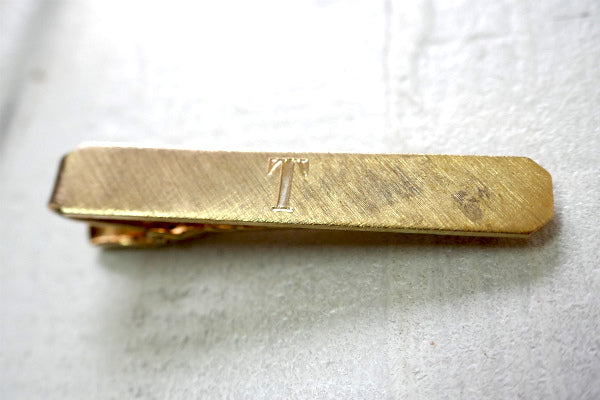 T イニシャル 刻印 ゴールドトーン クリッパー ヴィンテージ タイピン USA アクセサリー 小物