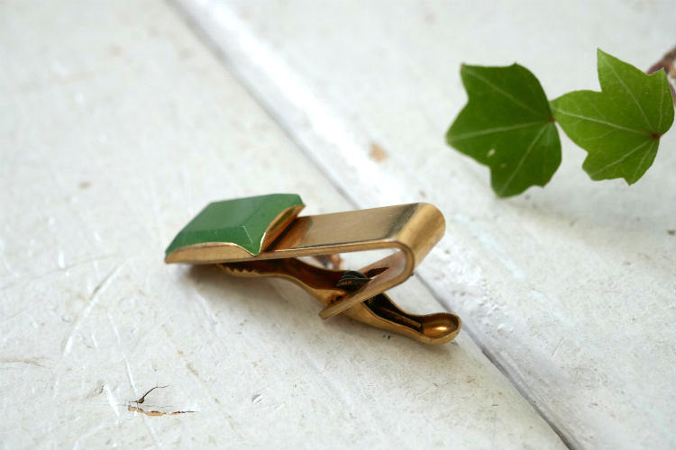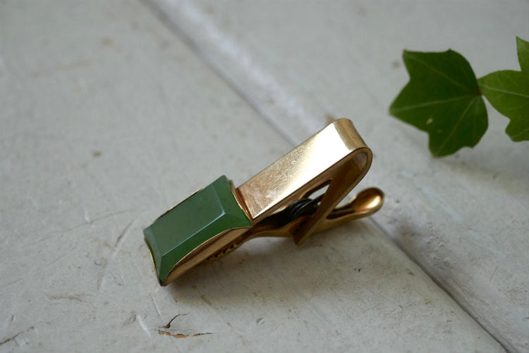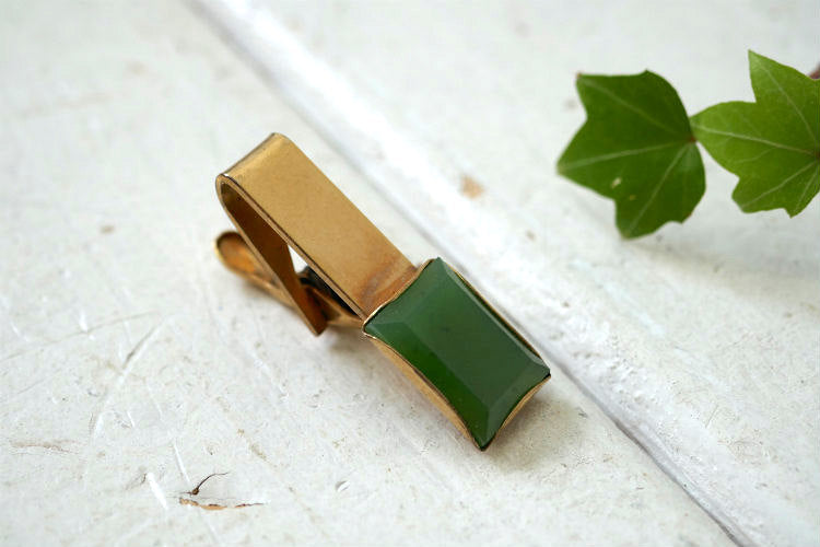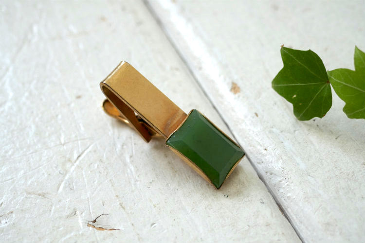 アメリカ西海岸・カリフォルニア州 ロサンゼルスで見つけました・・・グリーン装飾 ヴィンテージ・タイピン(タイバー)です。