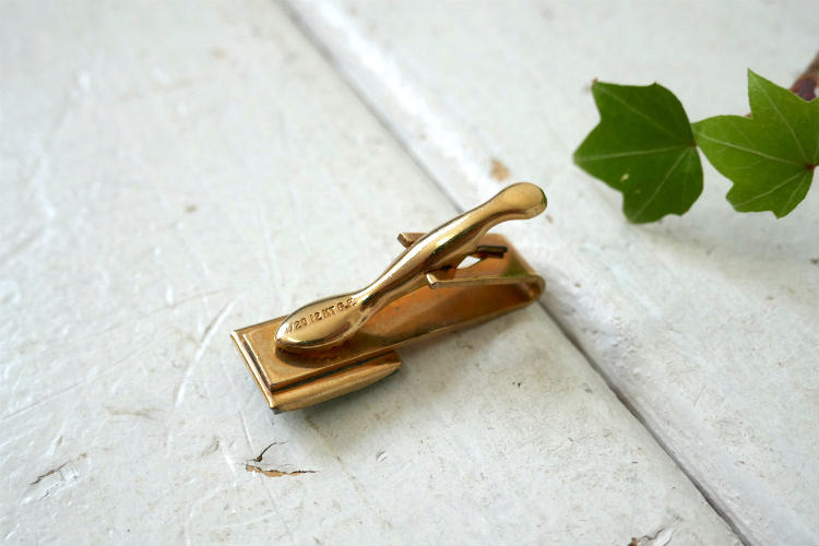 エメラルドグリーン 装飾 ゴールドトーン 1/20 12KT GF 金張り ヴィンテージ アクセサリー タイピン タイバー USA