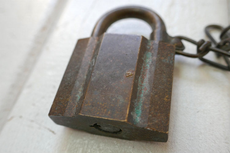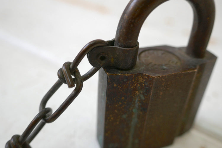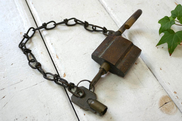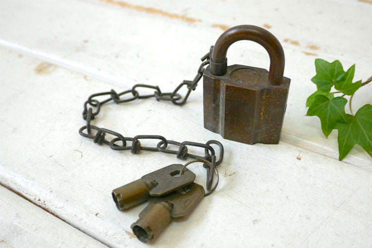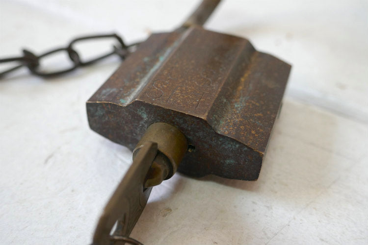 アメリカ西海岸・カリフォルニア州・サンディエゴで見つけました・・『U.S. SET』の真鍮製・チェーン&鍵2本付き・ヴィンテージ・南京錠(パッドロック)です。