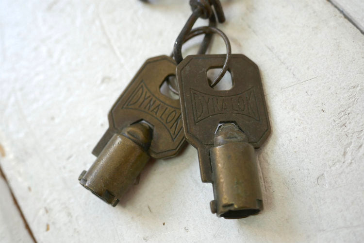 US SET DYNALOK USミリタリー ナンバー入り 真鍮製 チェーン 鍵2本付き ヴィンテージ アメリカ軍用 南京錠 パッドロック 鍵 USA