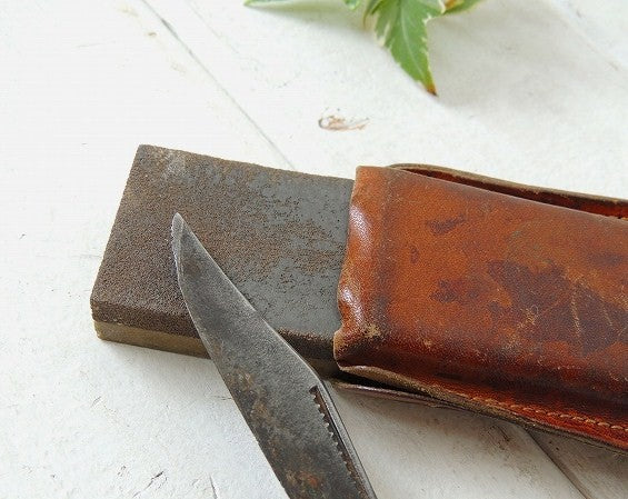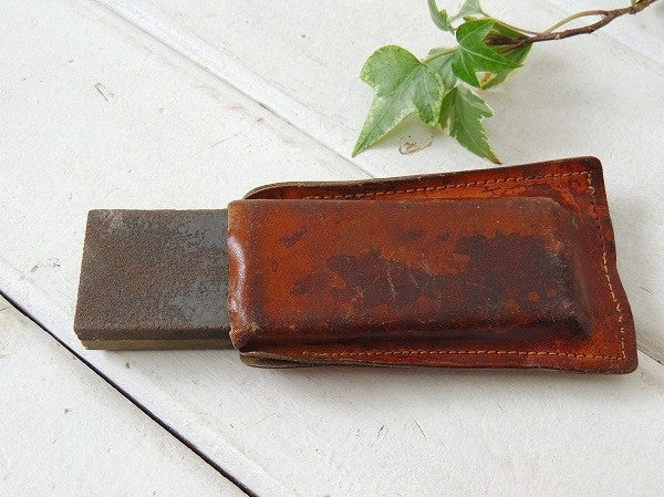 砥石 革 レザーケース付き ヴィンテージ ナイフ シャープナー US アウトドア キャンプ