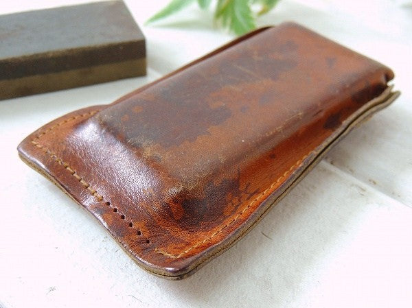 アメリカ西海岸、カリフォルニア ロサンゼルスで見つけました・・ ヴィンテージ レザー 革ケース付き ナイフ(刃物)シャープナー (砥石/シャープニングストーン)です。
