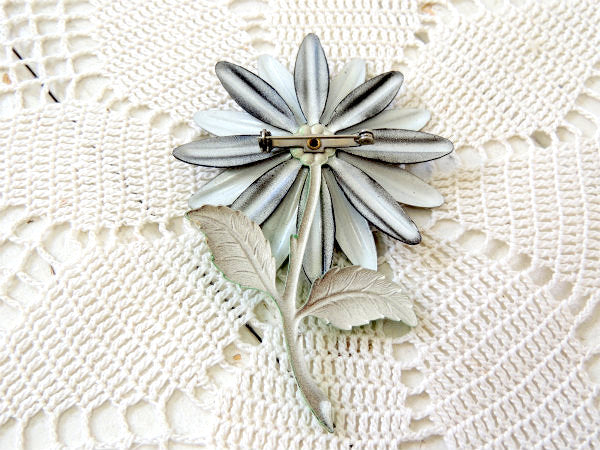 グレー×黒×グリーン 1960~1970s フラワーモチーフ レトロ ヴィンテージ ブローチ アクセサリー USA