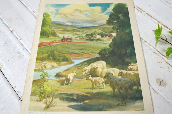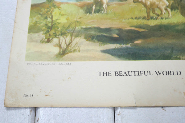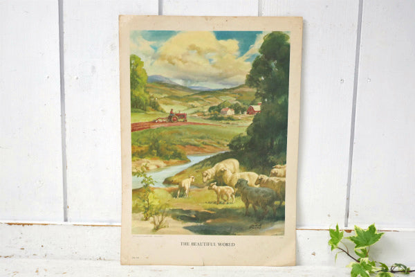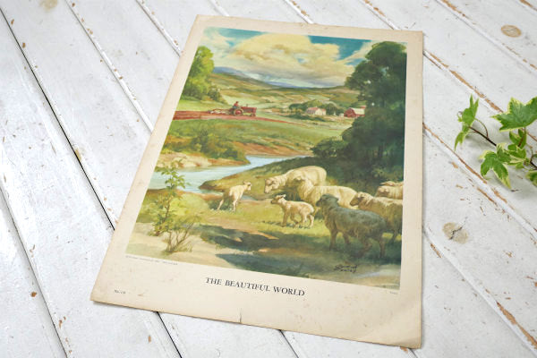 BEAUTIFUL WORLD 羊&草原 リトグラフ 60s ヴィンテージ アートワーク ポスター USA