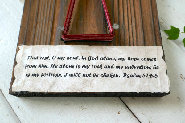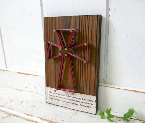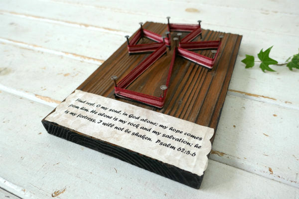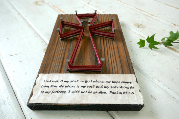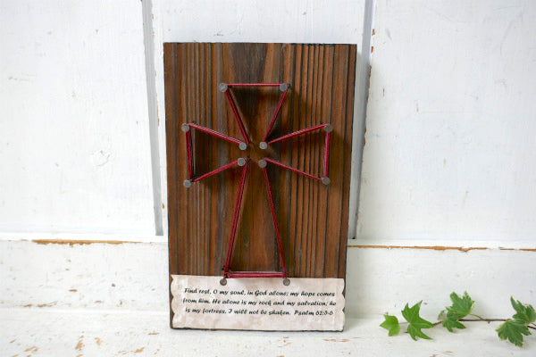 ストリングスアート ウォールデコ 木製 ヴィンテージ 十字架 クロス キリスト 聖品 聖書の言葉