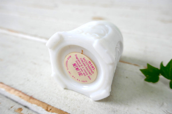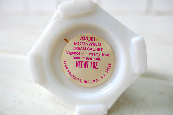 ボトムのラベルに【AVON MOONWIDE CREAM SACHET Fragrance in a creamy base. Smooth over skin. NET WT 1 OZ. 4 AVON PRODUCTS, INC.,NY., N.Y. 10019】とございます。
