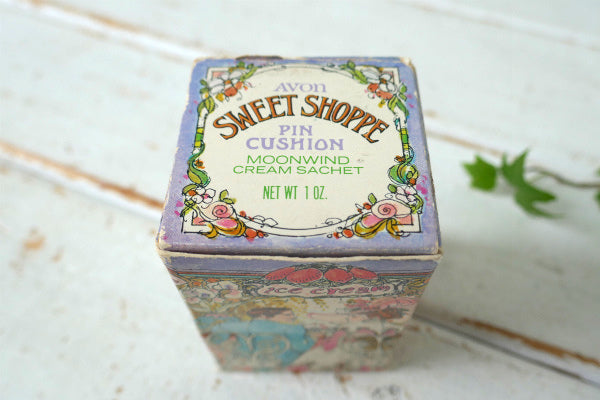 アメリカ西海岸・カリフォルニア州・サンフランシスコで見つけました・・AVON(エイボン)社のデッドストック箱入り・ヴィンテージ・コロンボトル『SWEET SHOPPE PIN CUSHION』です。