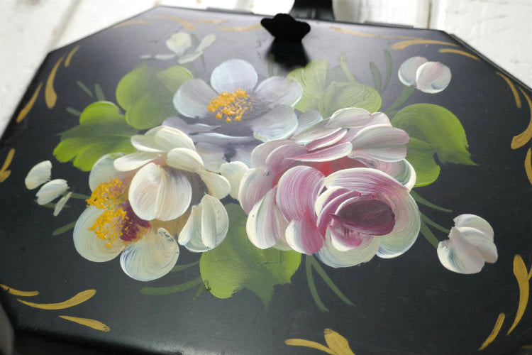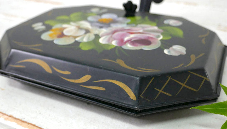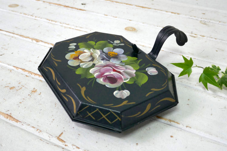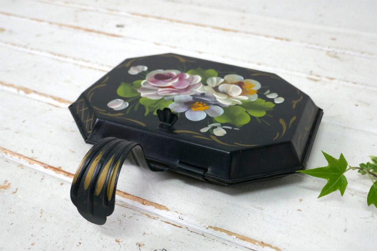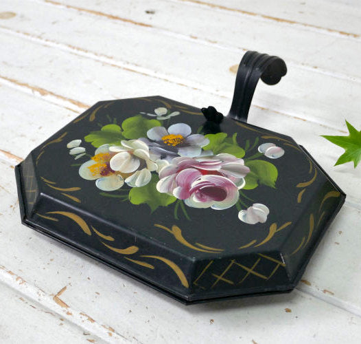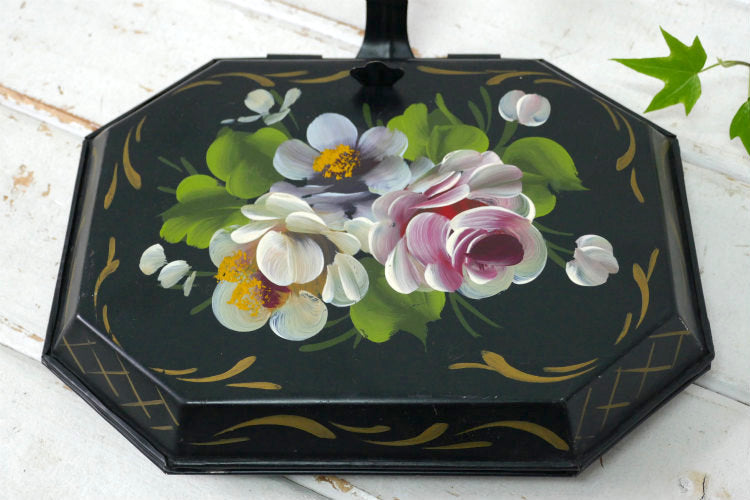 フラワー 花柄 ハンドペイント トールペイント ヴィンテージ クラムトレイ 卓上ちりとり ダストパン USA