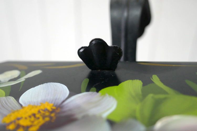 ブラックベースに、立体感ある花柄&ゴールドカラーの模様が描かれた、エレガントな気品溢れるデザインです。