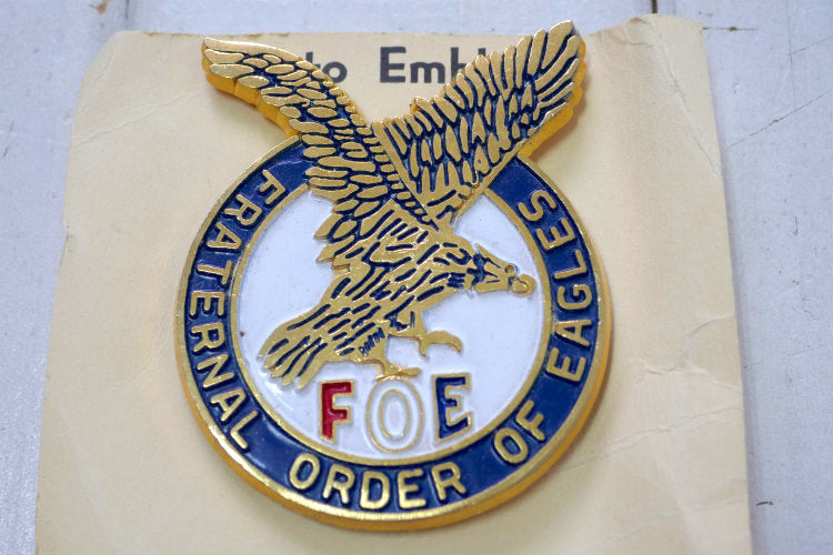 アメリカ西海岸・サンフランシスコで見つけました・・『Fraternal Order of Eagles(FOE)』のデッドストック未使用・ヴィンテージ・カーバッジ・エンブレム(サインプレート・トッパー TOPPER)です。