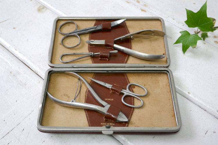 LA SALLE 西ドイツ WESTERN GERMANY レザー製 ヴィンテージ ネイルケア トラベルキット