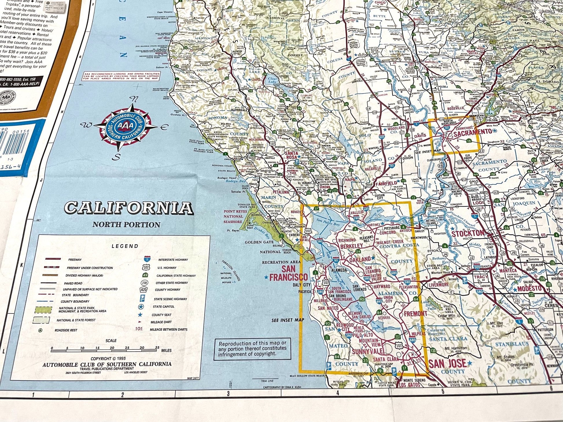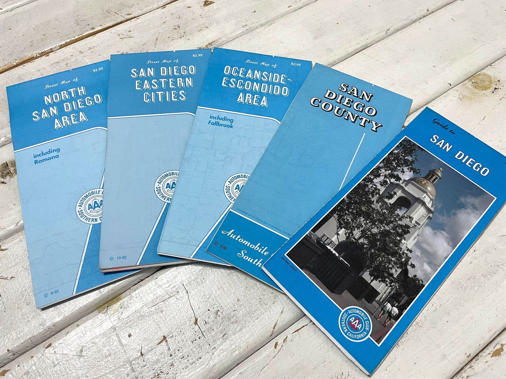 アメリカ西海岸・カリフォルニア州・ロサンゼルス郊外で見つけました・・『AAA(トリプルエー)』南カリフォルニア・1992年のメンバーシップキット(車検証入れ)6冊の地図です。