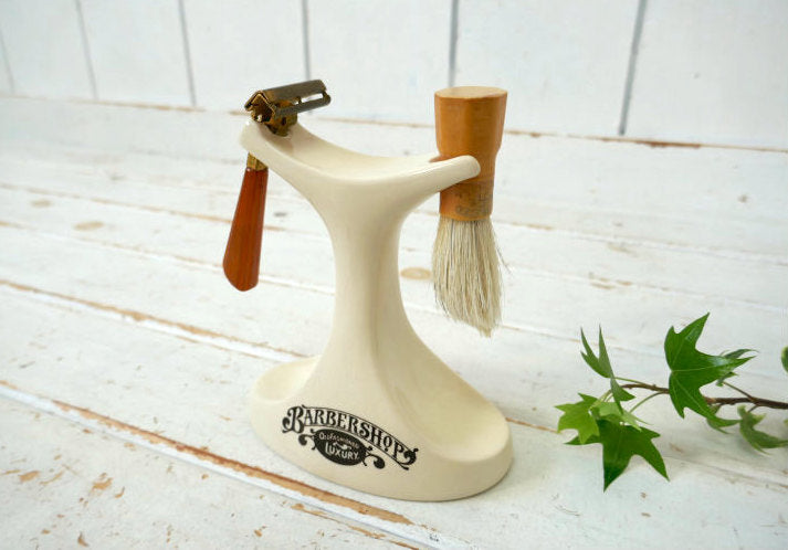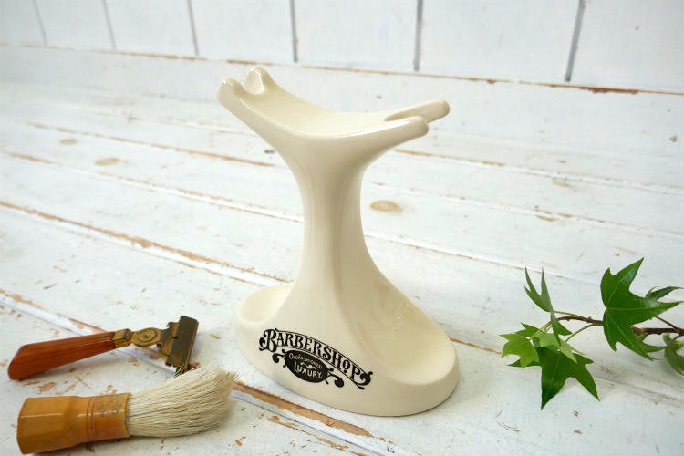BARBER SHOP LUXURY バーバーショップ カミソリ 髭ブラシ セラミック製 70's ヴィンテージ スタンド USA