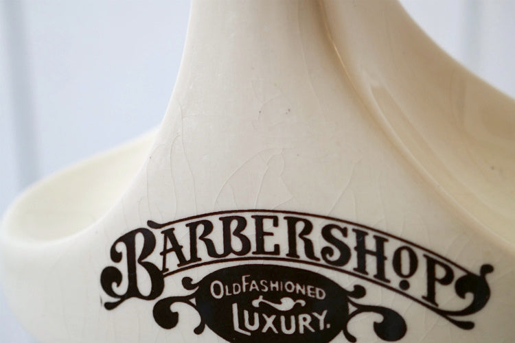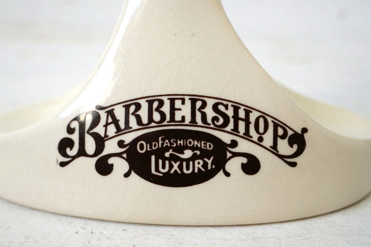 アメリカ西海岸・カリフォルニア州・ロサンゼルス郊外で見つけました・・『BARBER SHOP OLDFASHIONED LUXURY』のセラミック製・ヴィンテージ・カミソリ&髭ブラシ・スタンドです