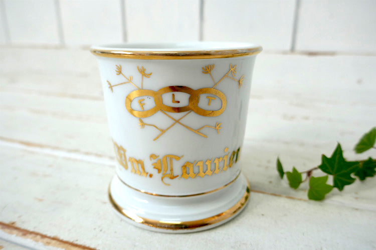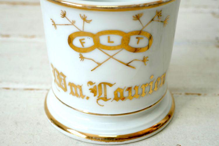 アメリカ西海岸・カリフォルニア州 ロサンゼルスで見つけました・・” オッドフェローズ・FLT 秘密結社 ”セラミック製・アンティーク・シェービングカップです。
