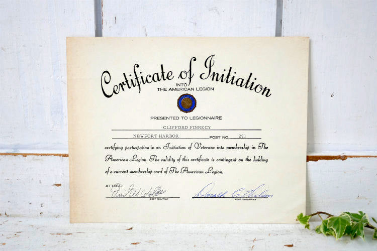 US THE AMERICAN LEGION アメリカ軍 米軍実物 ヴィンテージ ミリタリー 印刷物 書類 感謝状 米軍放出品 直筆サイン