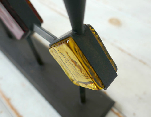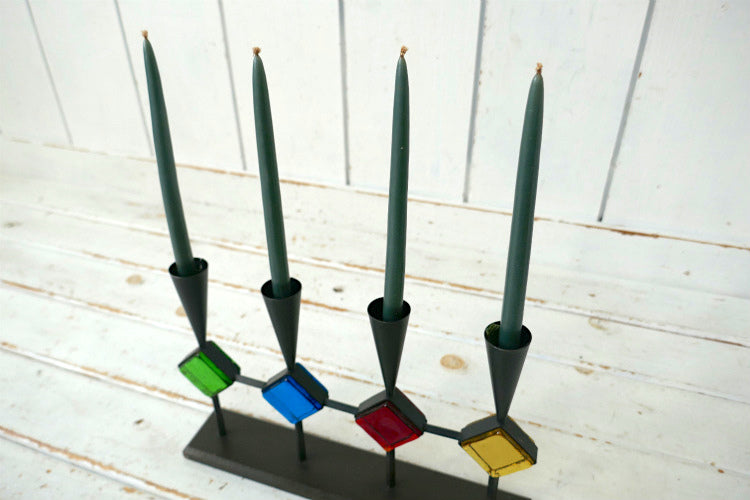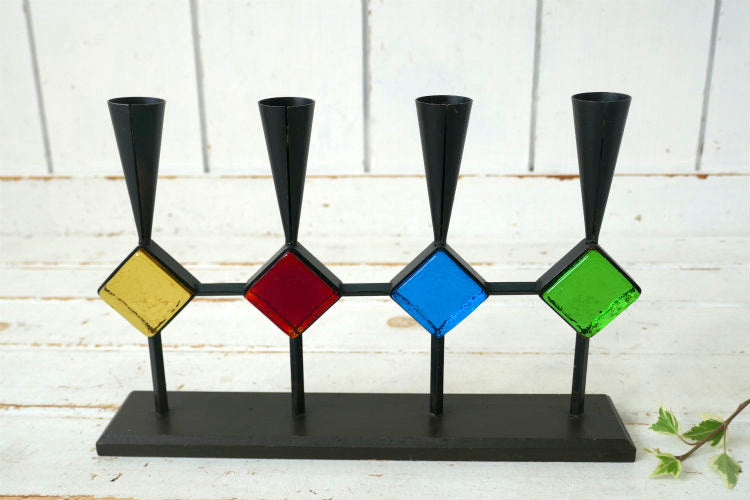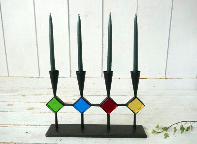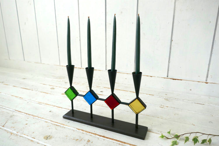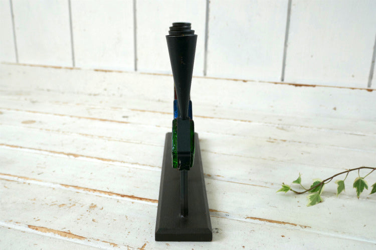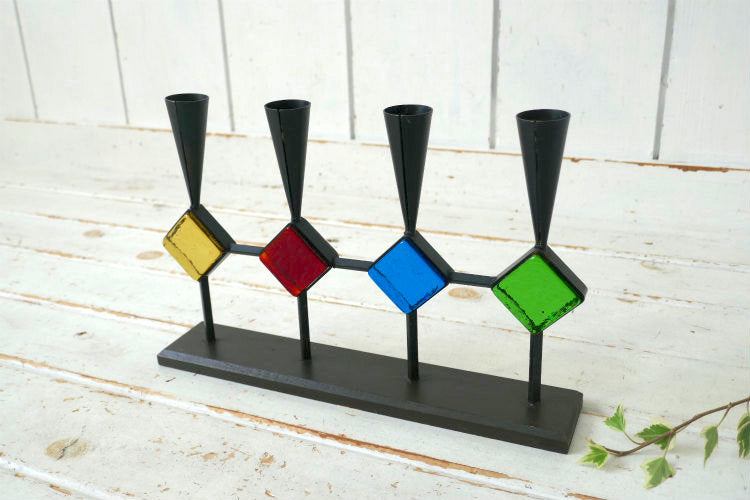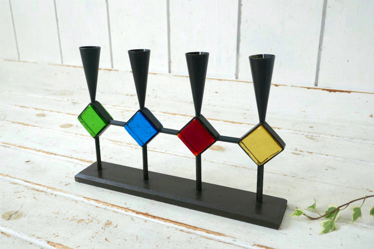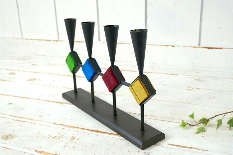 Bo Svensk スウェーデン カラーガラス アイアン製 木製 ミッドセンチュリー 60's ヴィンテージ キャンドルホルダー スタンド ロウソク立て