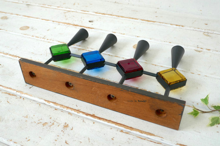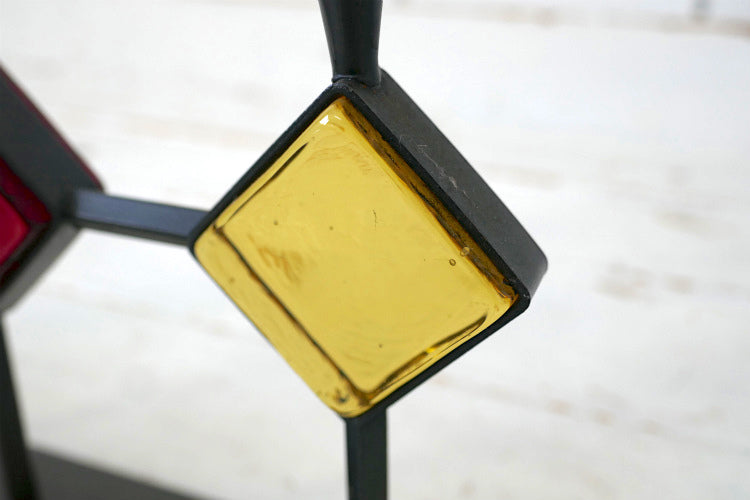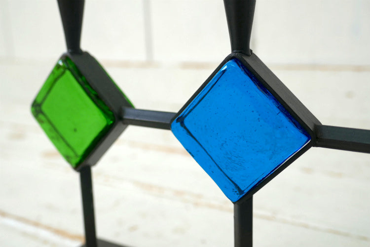 木製ベース×にアイアン×カラーガラス(緑・青・赤・黄)を組み合わせた“スカンジナビアン”デザインの、洗練された素敵なお品です。