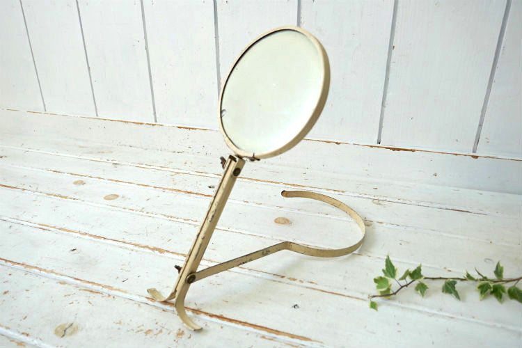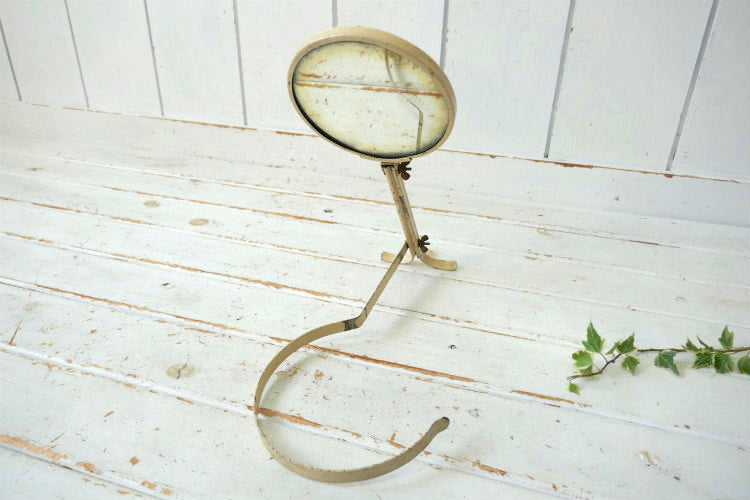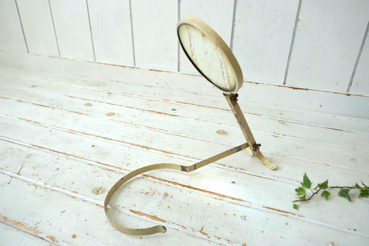 アメリカ西海岸・カリフォルニア州・サンフランシスコで見つけました・・シャビーなアイアン製の可動式・ヴィンテージ・スタンドミラーです。