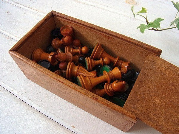 アメリカ合衆国 サンフランシスコで見つけました・・小さな木箱入りのアンティーク・チェス(駒)です。