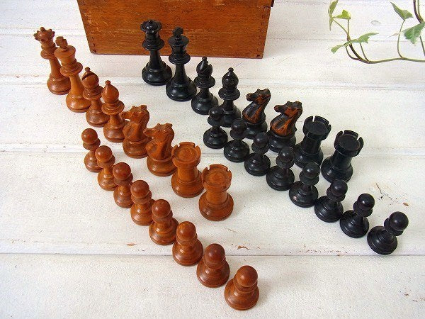 chess チェス 木箱入り アンティーク チェス 駒 USA