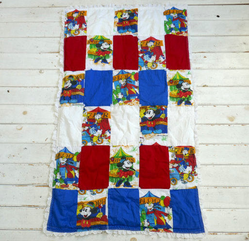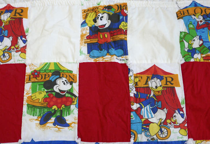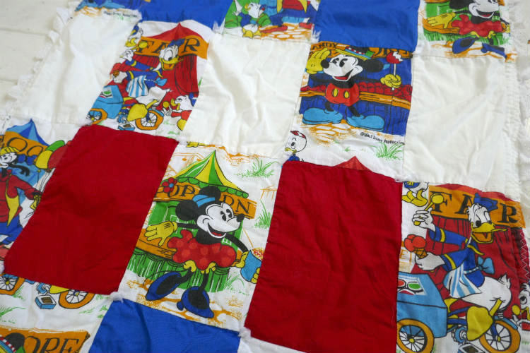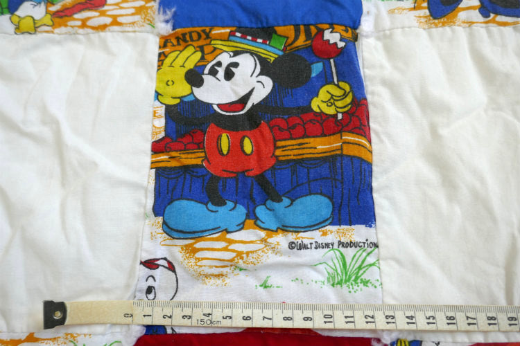 ミッキー&フレンズ カーニバル柄 パッチワーク レース付き 70's ヴィンテージ ベビーマット マット USA