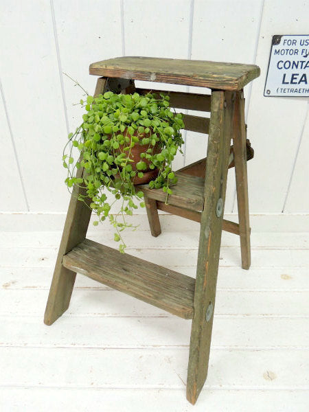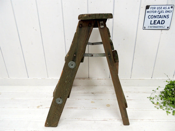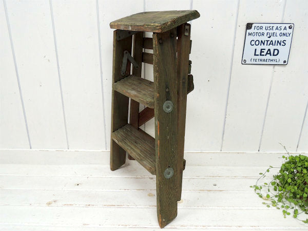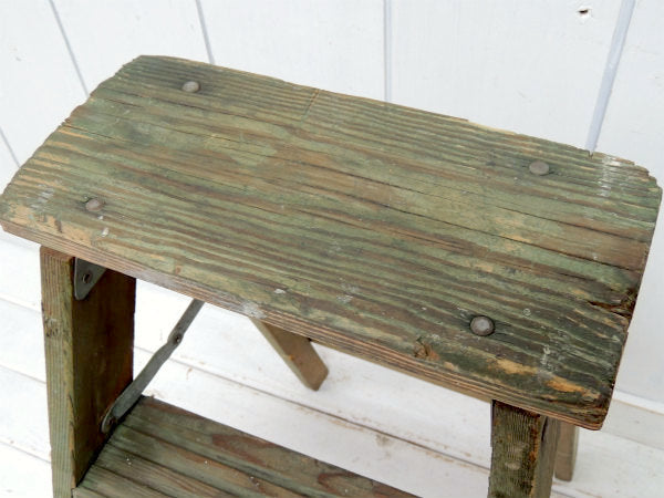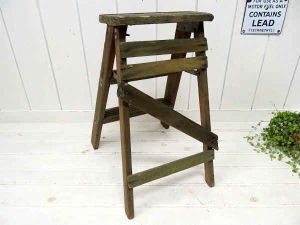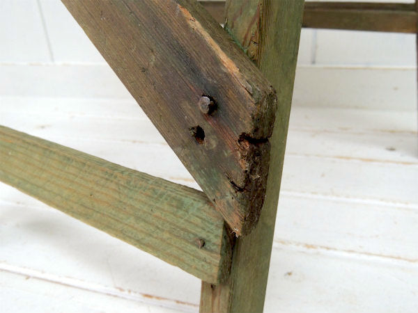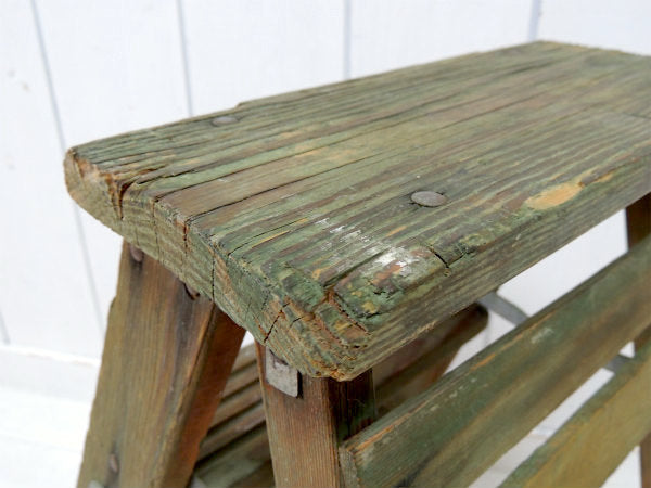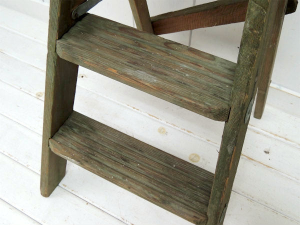 グリーン色・古い木製のシャビーなアンティーク・OLDステップラダー/脚立/ガーデニング