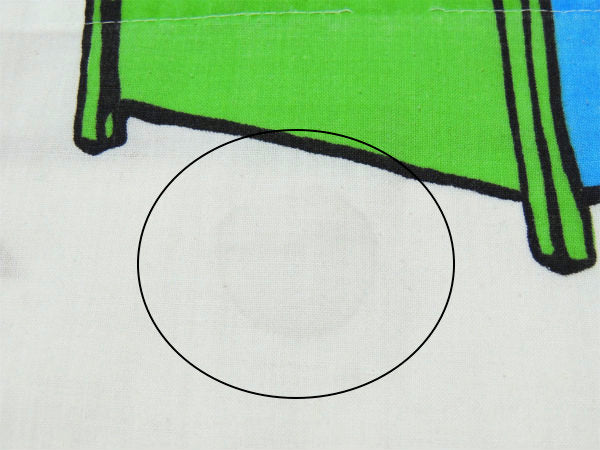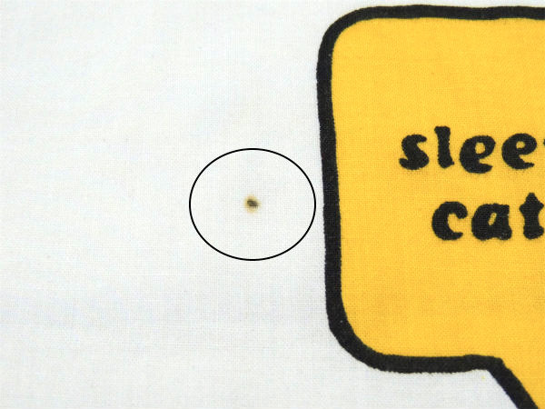 プリントの発色良く、生地もしっかりしておりますが、数カ所にヨゴレ等ございます(画像参照)。