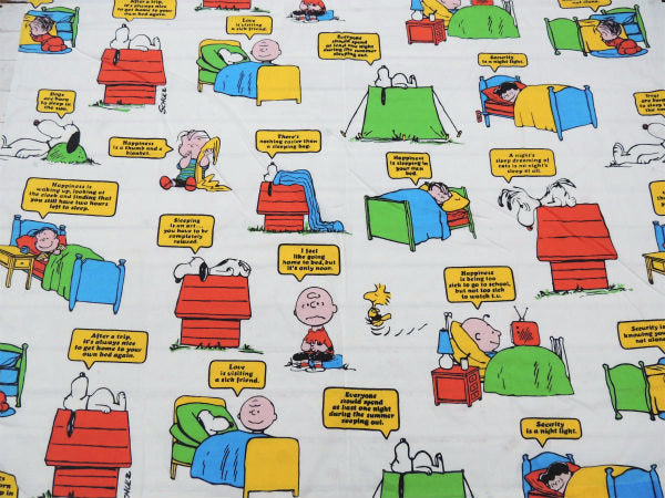 【スヌーピー】ピーナッツの仲間・ベッドタイム柄・70'ヴィンテージ・USEDフラットシーツ(1/2)