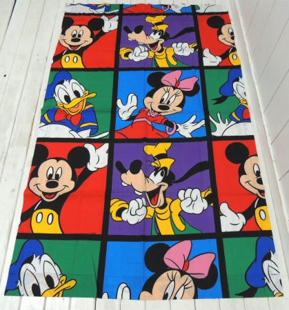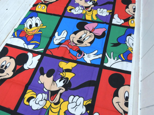 【ミッキー&フレンズ】ディズニー・パネル柄・大柄プリント・ヴィンテージ・カーテン/生地