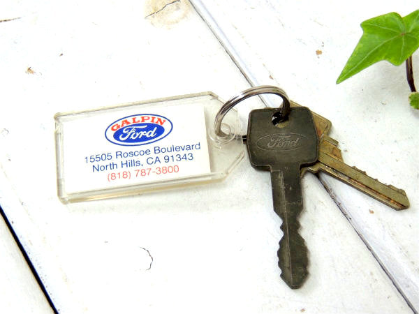 アメリカで西海岸で見つけてきました! "Ford/GALPIN"・ヴィンテージ プラスチック製 キーホルダー(ノベルティ)+鍵 2本付き(Ford・WEISER)