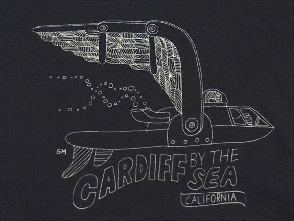 サーフボード形のユニークな潜水艦デザインに【CARDIFF BY THE SEA CALIFORNIA】の文字ががプリントされております。