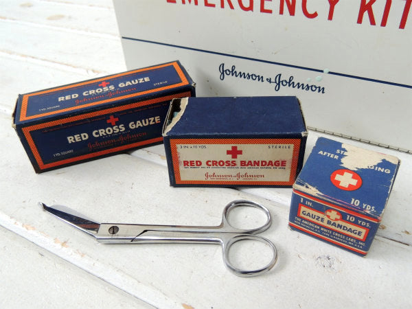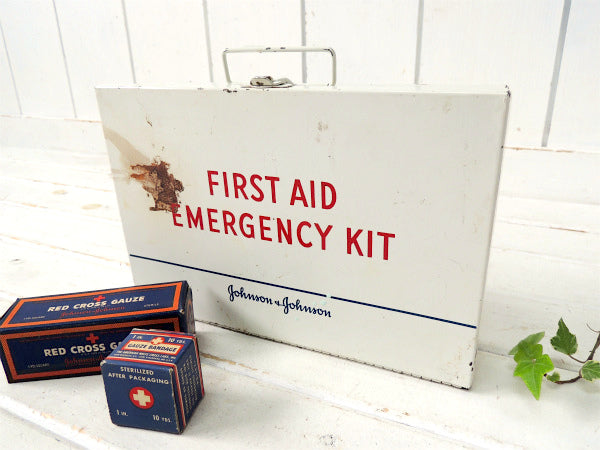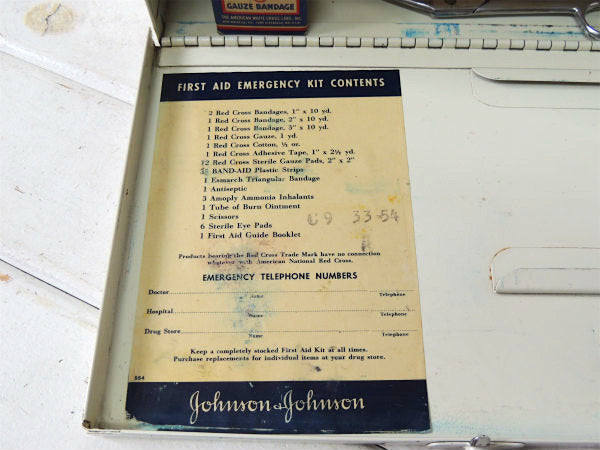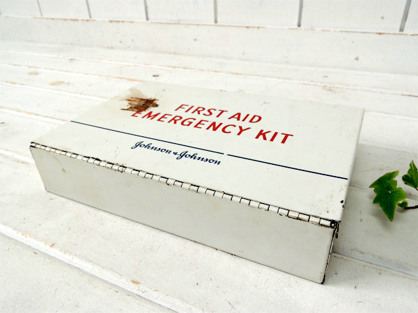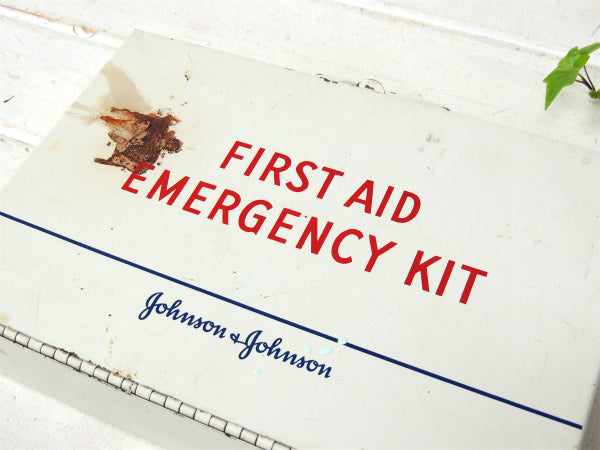 ジョンソン&ジョンソン(Johnson&Johnson)の【FIRST AID KIT(ファーストエイドキット)】ホワイト・メタル製・ヴィンテージ・救急箱です。
