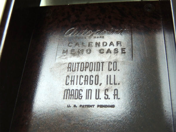 内側に【AUTOPOINT TRADE MARK CALENDAR MEMO CASE AUTOPOINT CO. CHICAGO, IL. MADE IN U.S.A.】とエンボス文字が入っています。