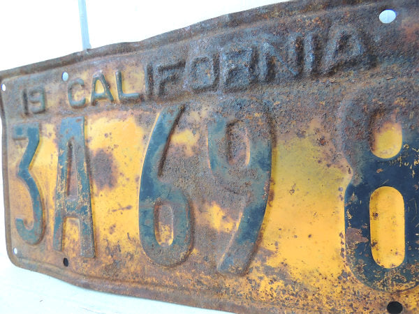イエローベースに【3A 6983/19 CALIFORNIA 34】と黒色のエンボス文字が入っております。