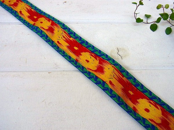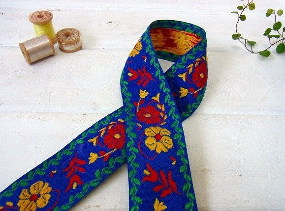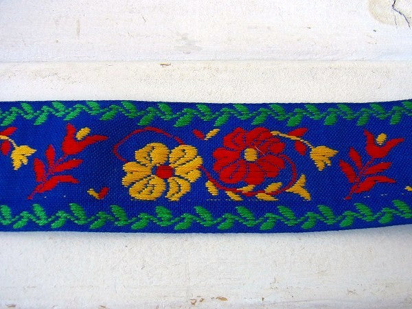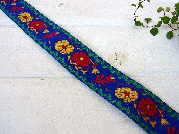 レトロな花柄・幅広タイプ・デッドストック・ヴィンテージ・チロリアンテープ/青地 USA