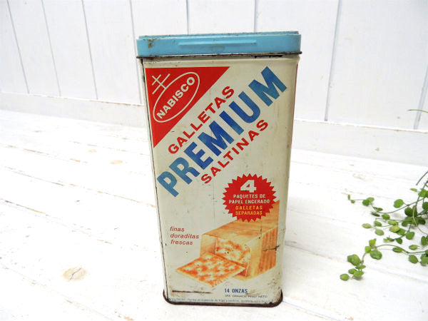 アメリカ・カリフォルニアでみつけました・・ナビスコ社のクラッカー『GALLETAS・PREMIUM(プレミアム)SALTINAS』のヴィンテージ・ティン缶(ブリキ缶)です。